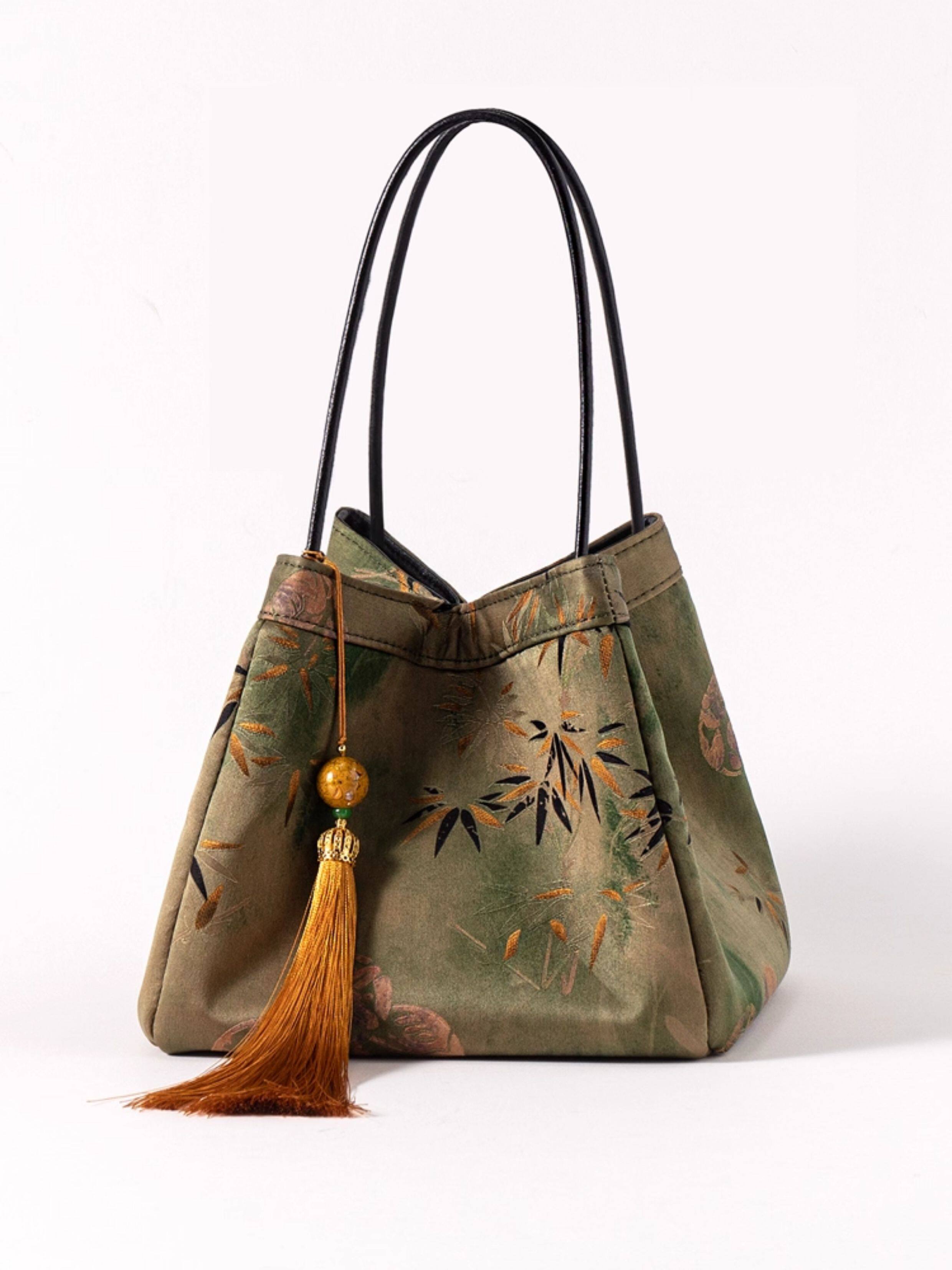 A luxurious handbag crafted from traditional Xiangyunsha (perfumed cloud gauze) and Song brocade silk, blending contemporary Chinese aesthetics with heritage craftsmanship. Designed as an elegant gift for mothers and respected elders, this piece features exquisite botanical floral patterns and refined magnetic closure hardware. The spacious shopper tote shape offers both style and practicality for daily use and commuting occasions.