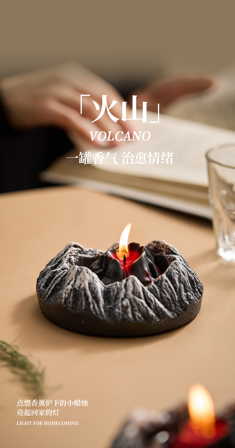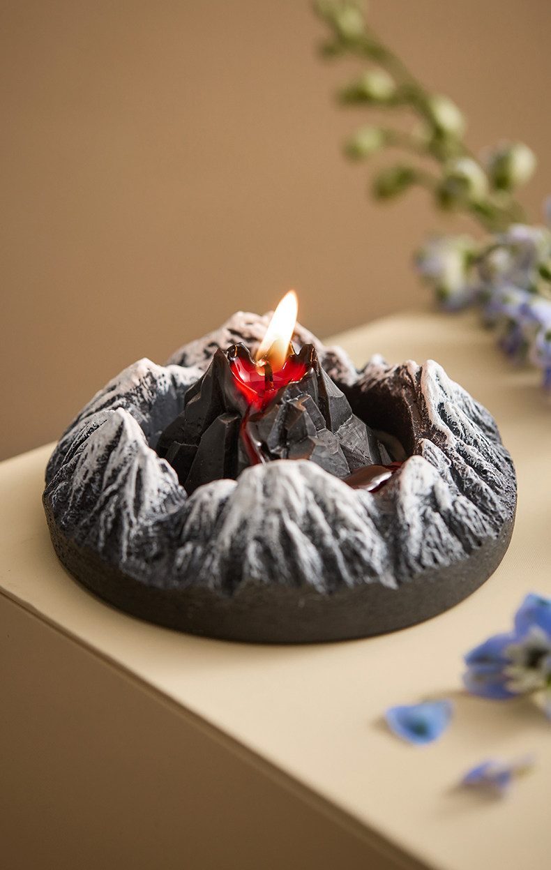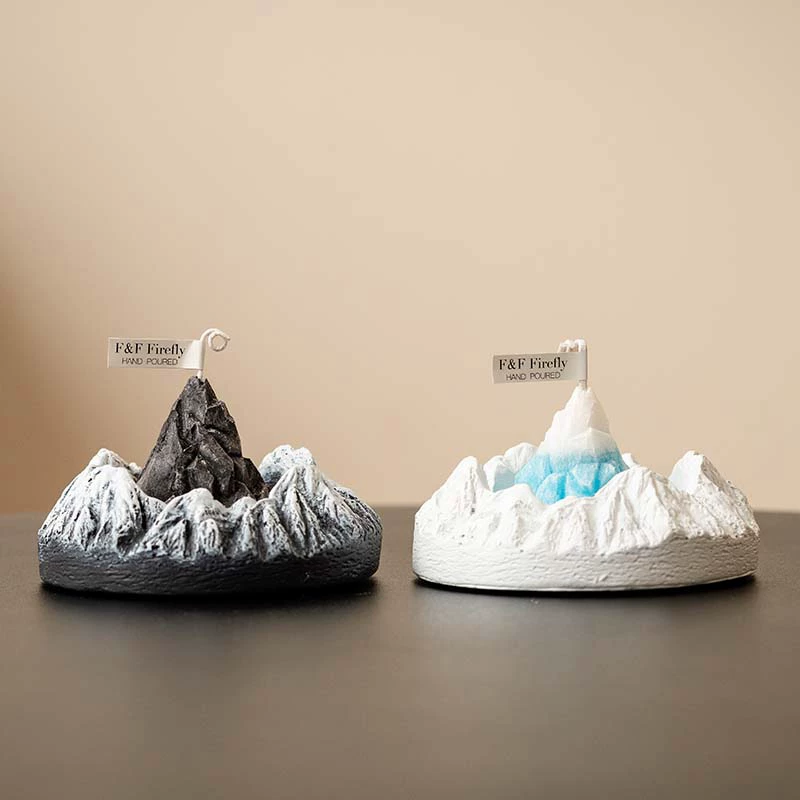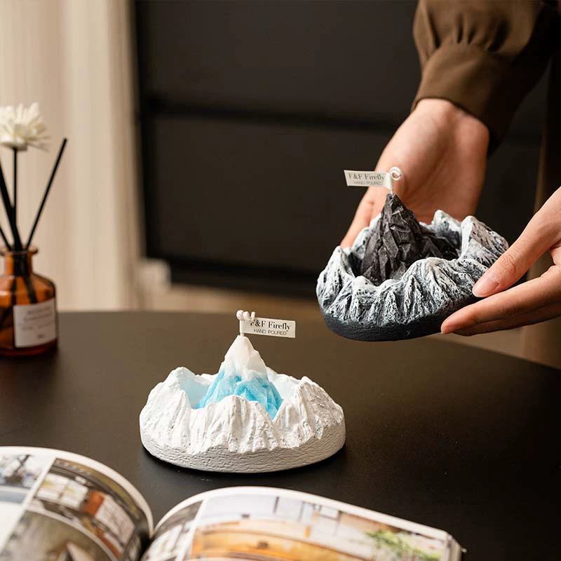 Handcrafted mountain-shaped aromatherapy candle decor that creates a soothing ambiance. Perfect for enhancing relaxation and promoting restful sleep in bedrooms. Features unique volcanic and icy mountain designs with an oriental-inspired fragrance blend.