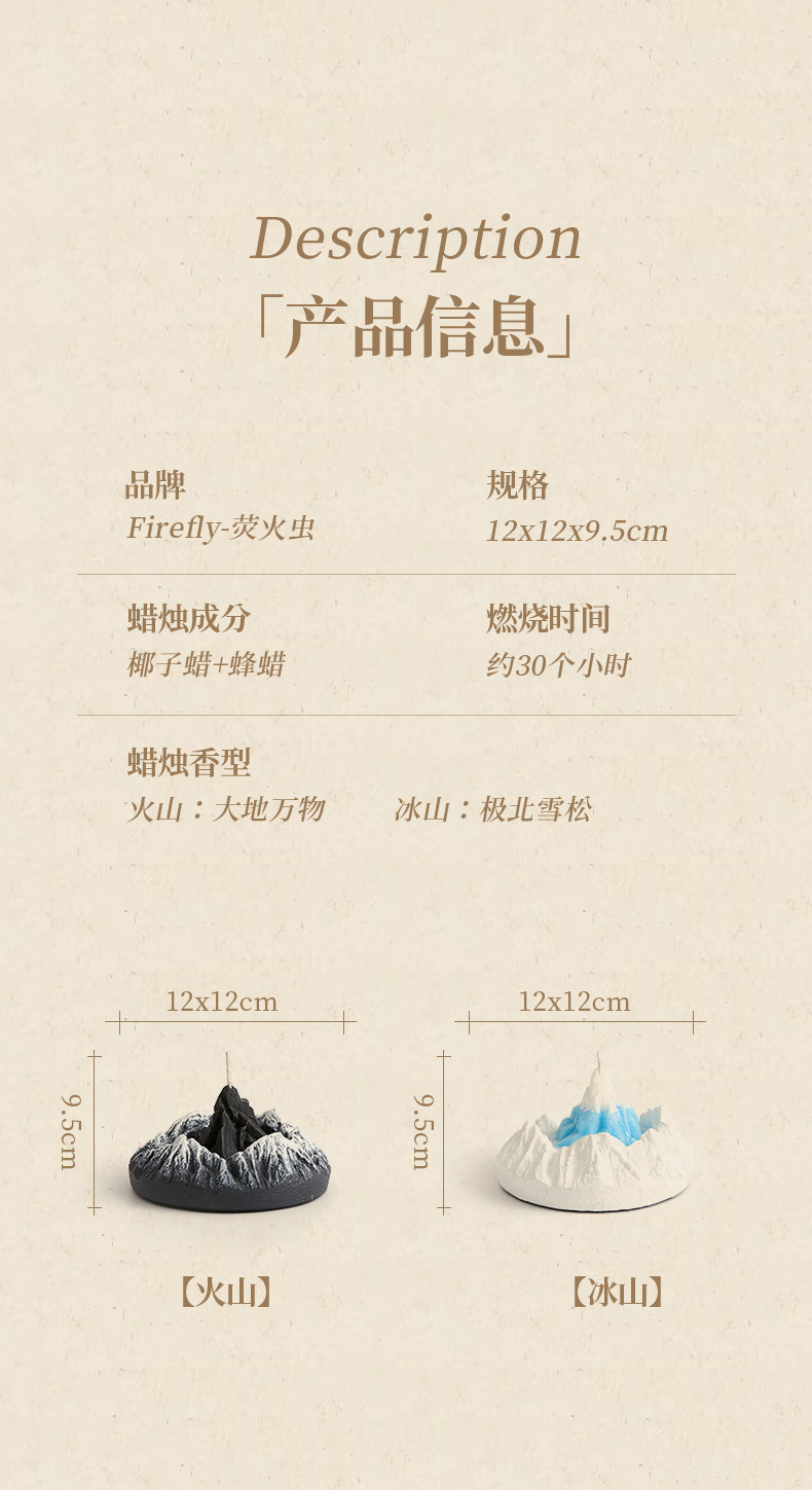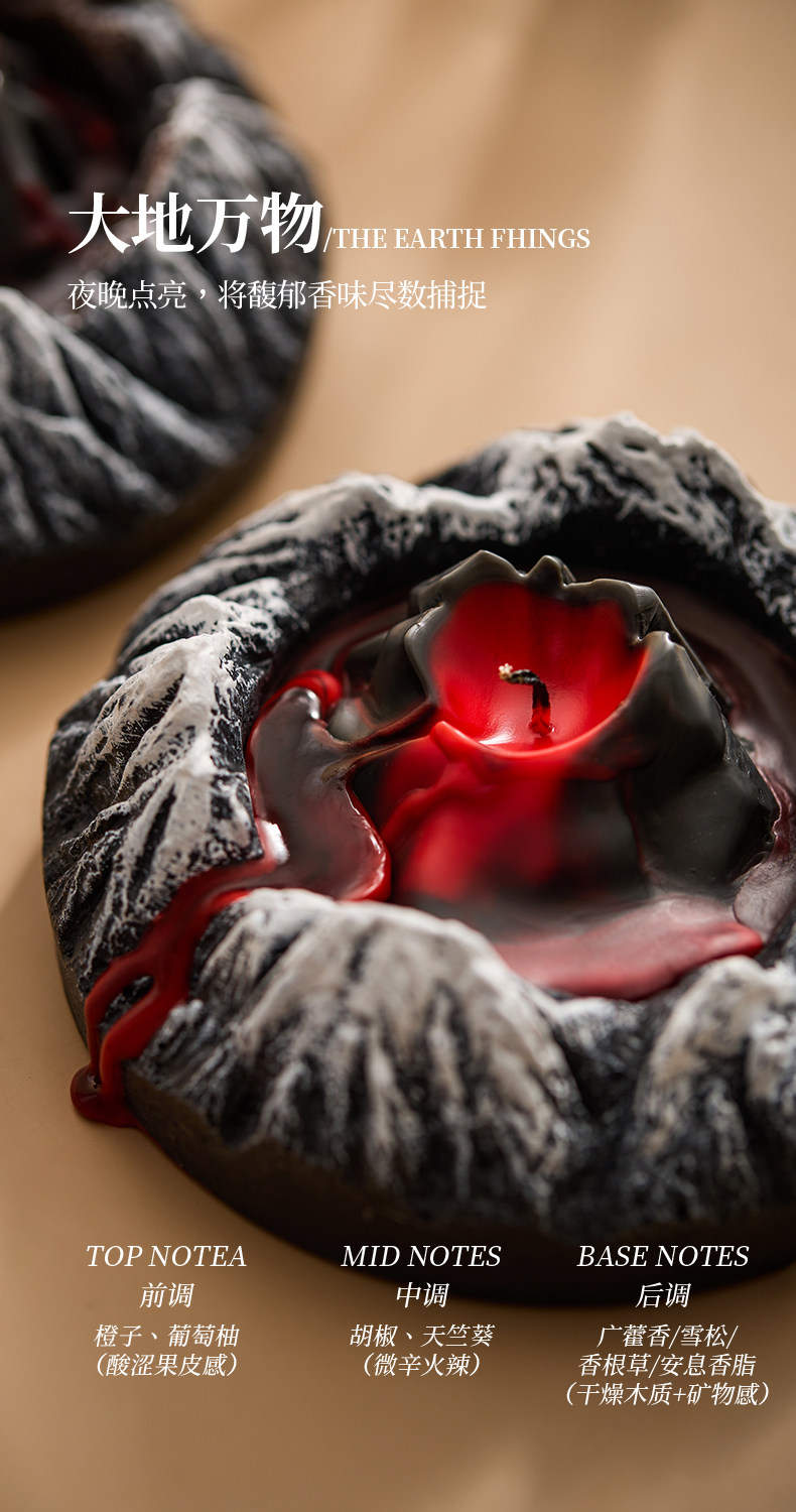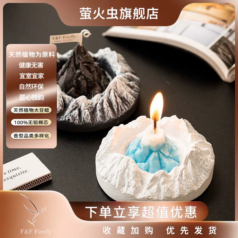 Handcrafted mountain-shaped aromatherapy candle decor that creates a soothing ambiance. Perfect for enhancing relaxation and promoting restful sleep in bedrooms. Features unique volcanic and icy mountain designs with an oriental-inspired fragrance blend.