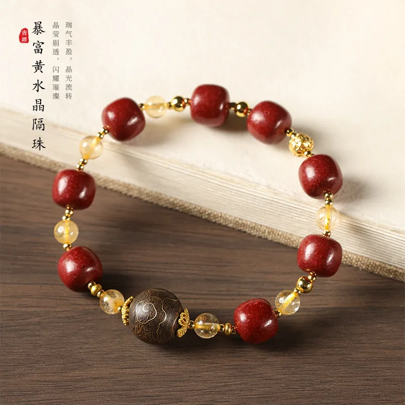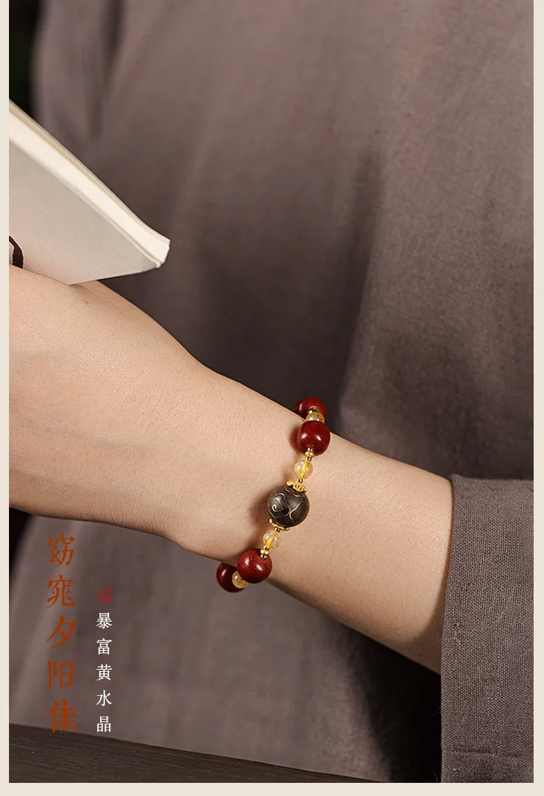 Ancient Craftsmanship & ICH Herbal Beads Bracelet with Yellow Citrine & Silver Filigree Cloud-Patterned Luck-Boosting BeadsAncient Craftsmanship & ICH Herbal Beads Bracelet with Yellow Citrine & Silver Filigree Cloud-Patterned Luck-Boosting Beads
