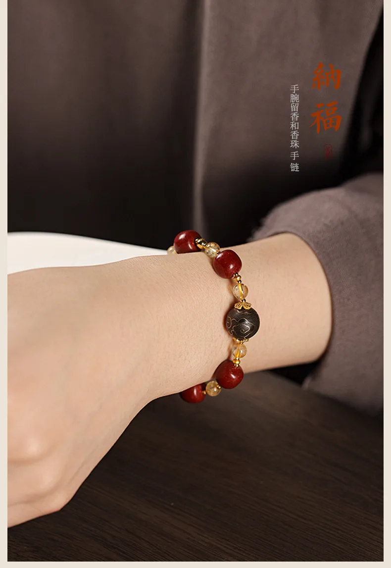 Ancient Craftsmanship & ICH Herbal Beads Bracelet with Yellow Citrine & Silver Filigree Cloud-Patterned Luck-Boosting BeadsAncient Craftsmanship & ICH Herbal Beads Bracelet with Yellow Citrine & Silver Filigree Cloud-Patterned Luck-Boosting Beads