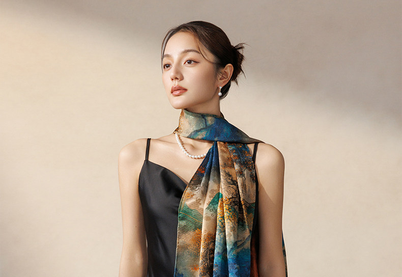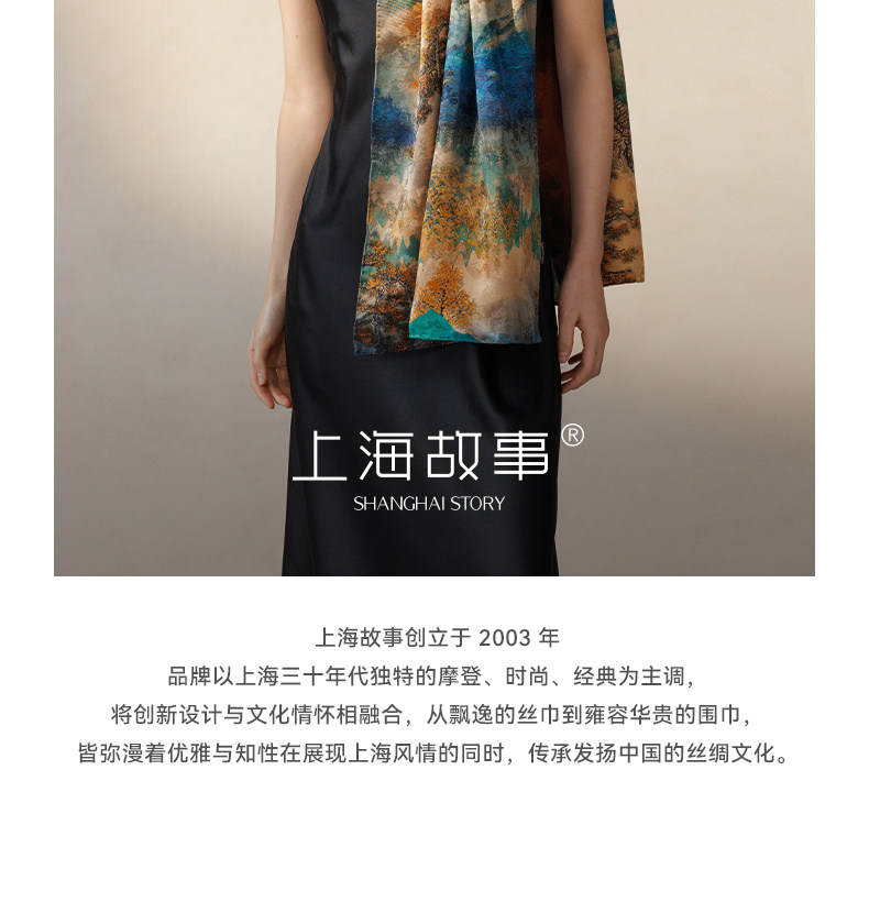 A luxurious silk scarf from Shanghai Story, perfect for gifting to mothers and elders. Made from 100% mulberry silk with traditional Xiangyunsha craftsmanship, this versatile shawl combines elegance with comfort. Features a rolled hem design and comes in a beautiful gift box, making it an ideal present for special occasions.